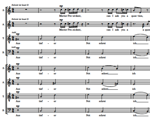 In dit opdrachtwerk voor het Belgische nationale jeugdkoor BEvocaL uit 2020 heeft Pankert markante delen van de Bach-koraal Aus tiefer Not schrei’ ich zu dir (tekst van Martin Luther, gebaseerd op Psalm 130) tegenover fragmenten uit interviews over de Amerikaanse politiek geplaatst – met verrassende interferenties.